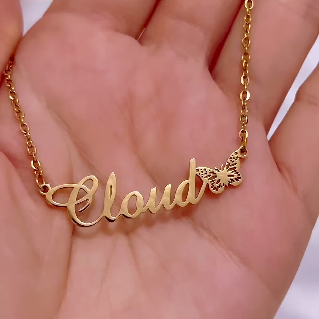 拋光鍍金的亮面不鏽鋼,光澤感高而且低敏舒適。可自由組合字母,搭配十二款專屬月份蝴蝶設計,為項鍊增添專屬紀念意義。