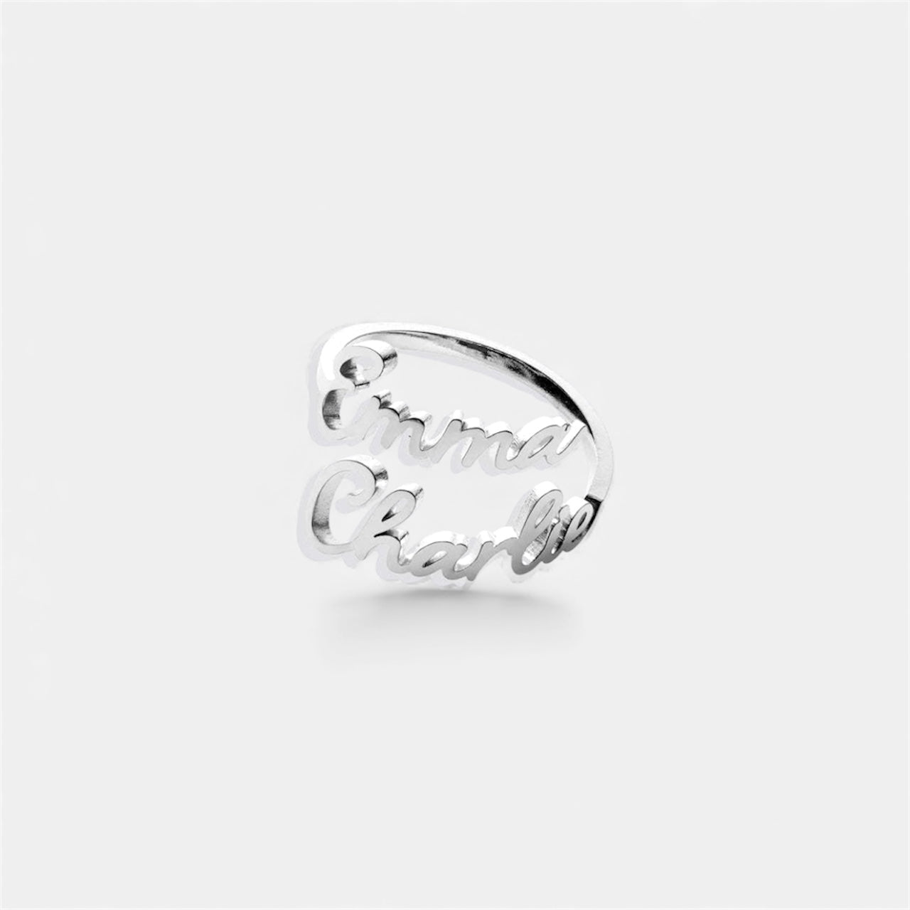 精細切割的字母配上柔和弧形戒圈,線條流暢立體。訂製專屬名字組合,營造層次與個人風格。