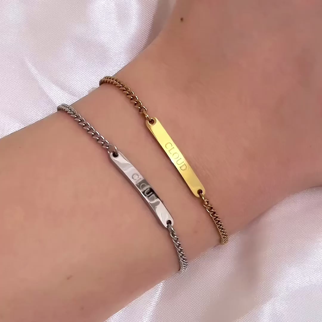 採用不鏽鋼拋光鏡面,不易變色或生鏽。可客製刻字,刻上名字、日期或紀念字句,帶出專屬意義。中性設計,情侶或家人都可配搭佩戴,作為紀念禮物更貼心。