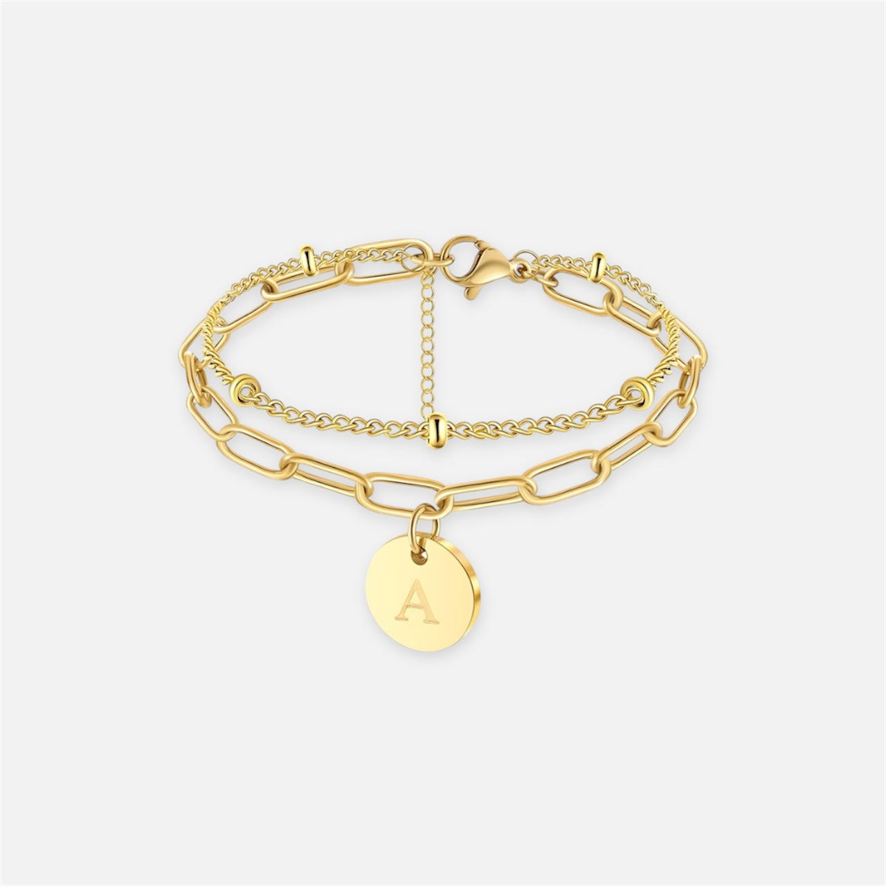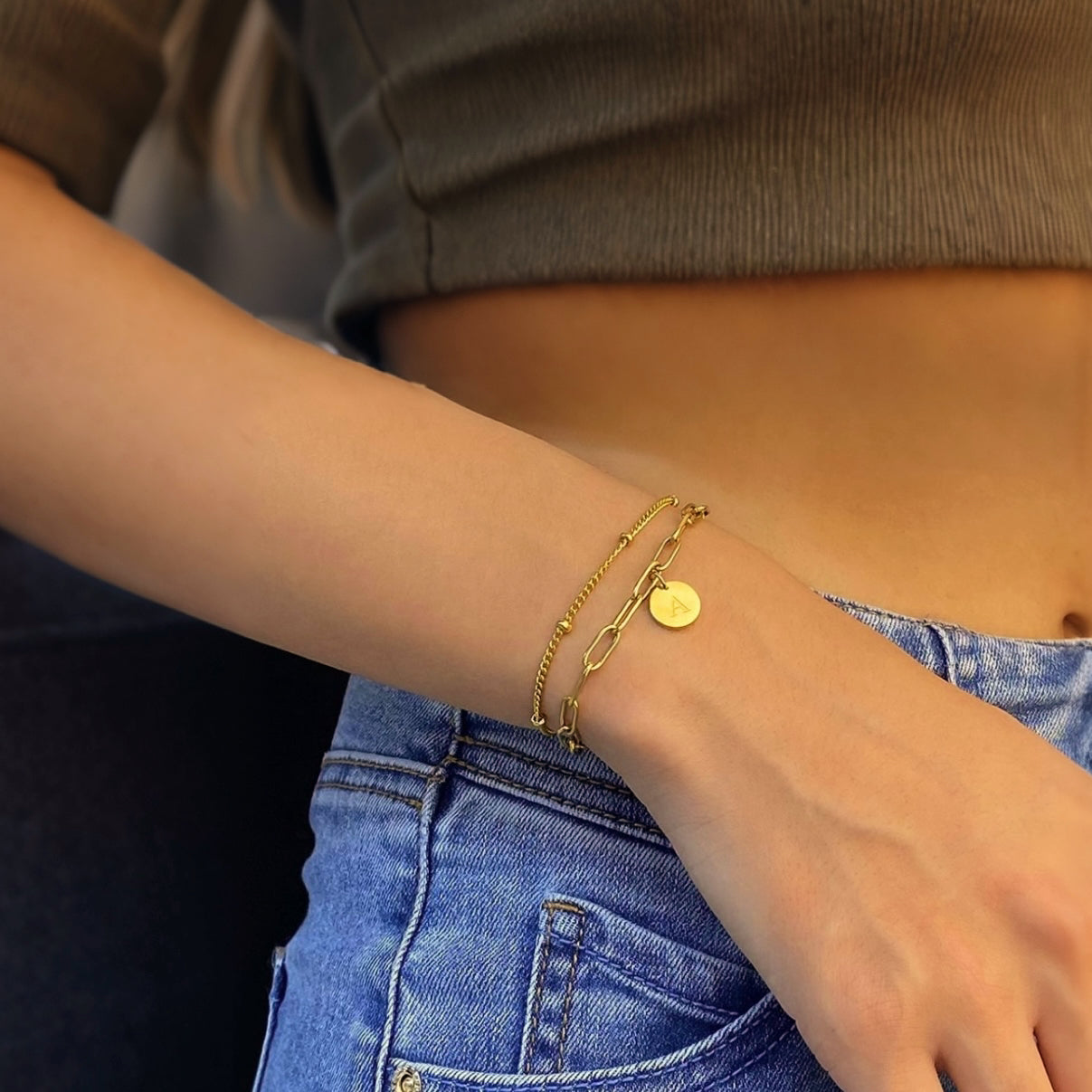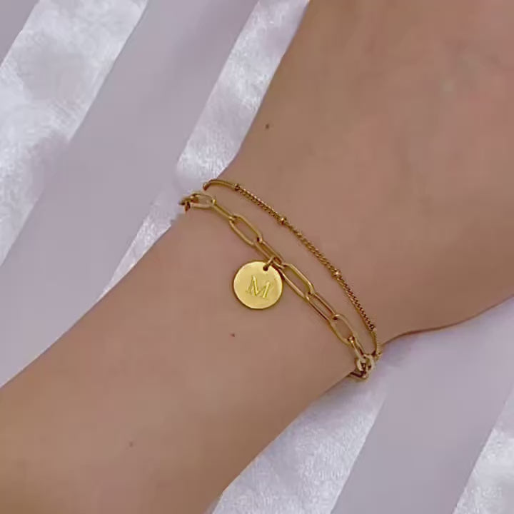 粗幼雙鏈一體式設計,小圓珠細鏈搭配回形針鏈條,輕鬆營造層次感。配上字母刻印圓牌,小巧精緻,適合日常佩戴。